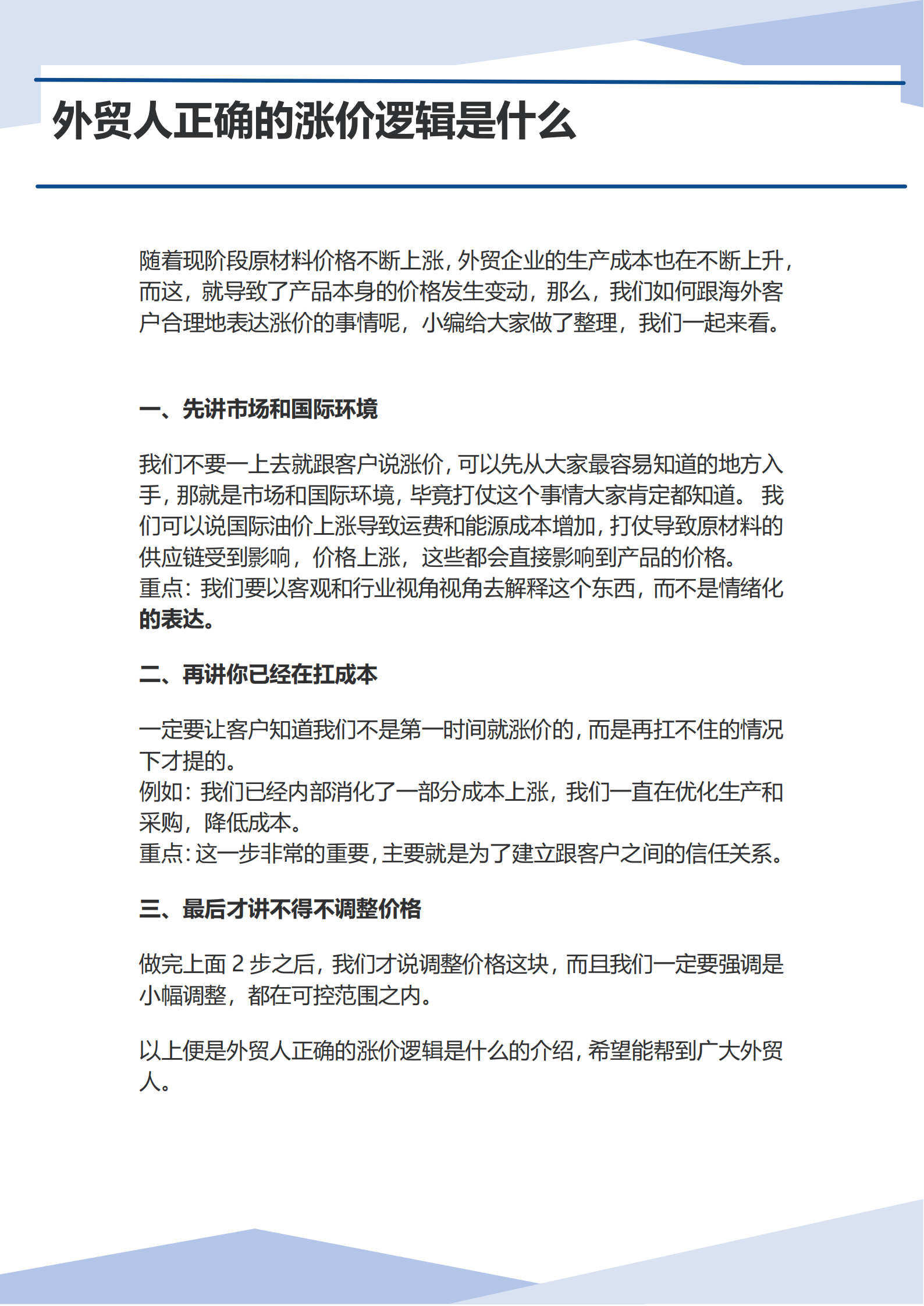 外贸人正确的涨价逻辑是什么